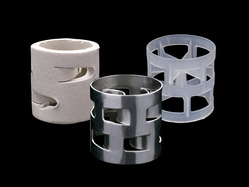 鮑爾環拉西環已有很大進步,而環直徑與高度相等,但環壁有兩排舌窗,每層孔五片。這樣的結構增加了氣體和液體的分布,使環面得到充分利用。和拉西環相比,容量可以超過50%,下部壓力部分;通常由金屬、塑料或陶瓷制成。