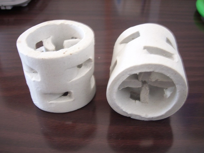 陶瓷鮑爾環可采用濕法安裝,在安裝支撐板后,向塔內注入水,將陶瓷填料從水面上方輕輕倒入水中,此時陶瓷鮑爾環從水中漂浮,此時陶瓷鮑爾環從水中漂浮,要高出水面1m以上。濕法填充物的均勻性、充填量減少約5%、填料通量大、壓力降小。濕充填可減少陶瓷填料的破損.變形。